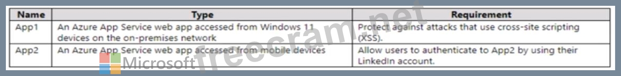 You plan to deploy the Azure applications shown in the following table.
