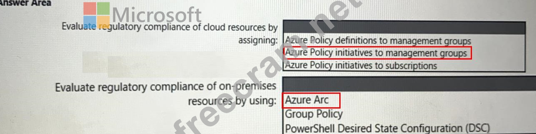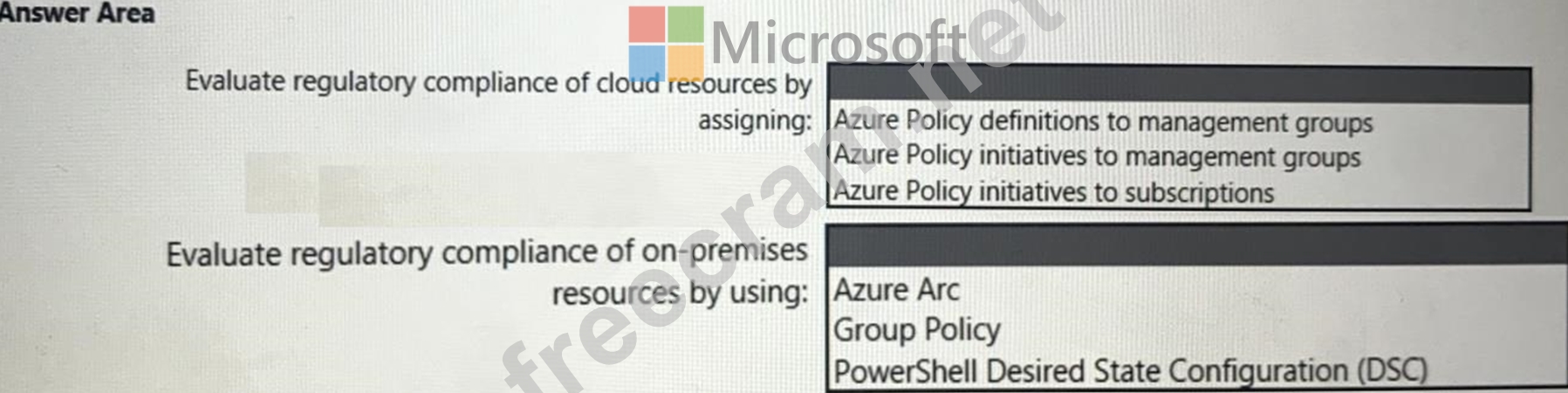 You need to recommend a solution to evaluate regulatory compliance across the entire managed environment. The solution must meet the regulatory compliance requirements and the business requirements.