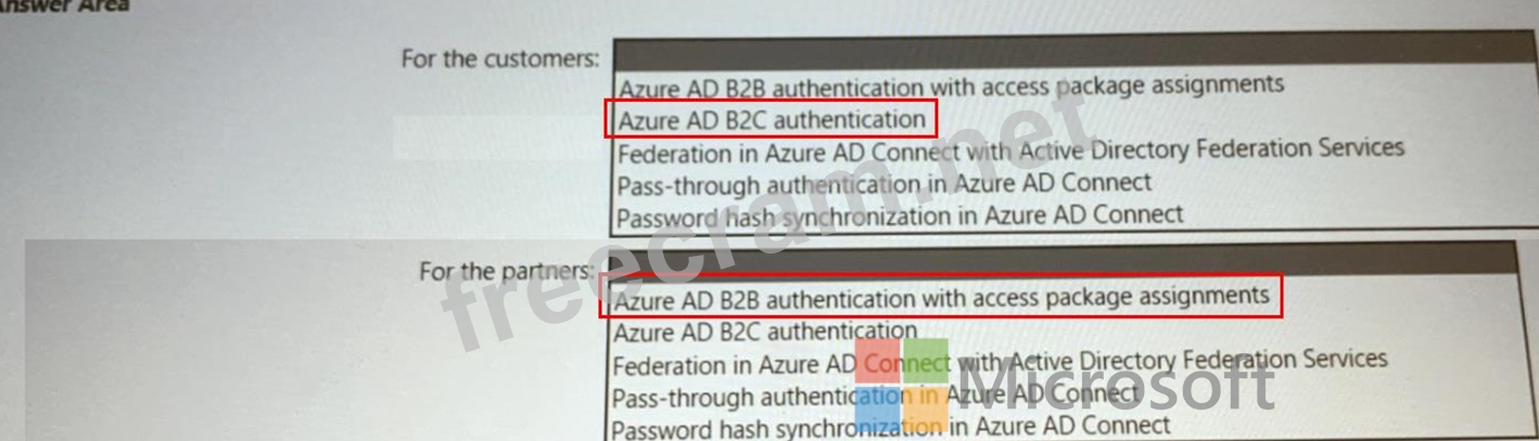 * Ensures that partner companies can access Microsoft SharePoint Online sites for the project to which they are assigned The solution must minimize the need to deploy additional infrastructure components. What should you include in the recommendation? To answer, select the appropriate options in the answer area.