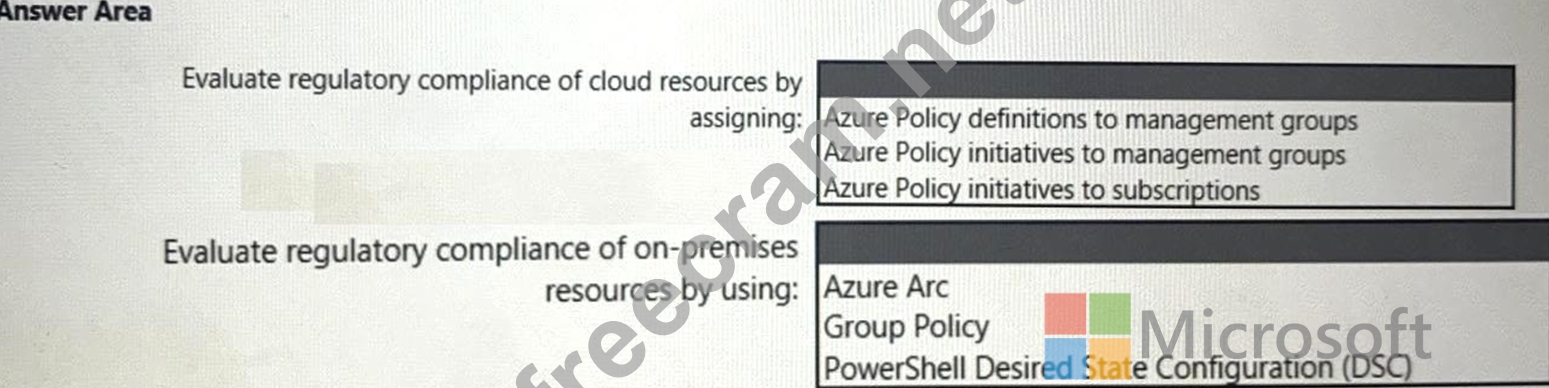You need to recommend a solution to evaluate regulatory compliance across the entire managed environment.
