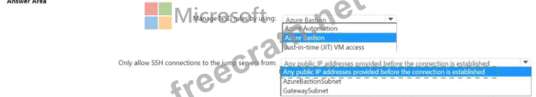 You plan to deploy a dynamically scaling, Linux-based Azure Virtual Machine Scale Set that will host jump servers. The jump servers will be used by support staff who connect from personal and kiosk devices via the internet. The subnet of the jump servers will be associated to a network security group (NSG).