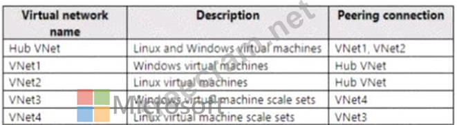 Your company plans to move all on-premises virtual machines to Azure. A network engineer proposes the Azure virtual network design shown in the following table.