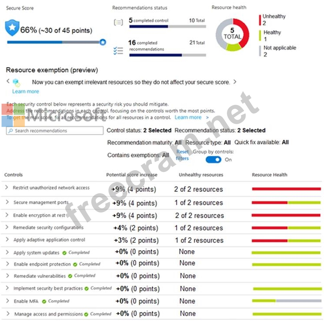 The secure score in Azure Security Center is shown in the Security Center exhibit. (Click the Security Center tab.)