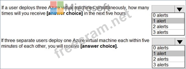 You use Azure Sentinel to monitor irregular Azure activity. You create custom analytics rules to detect threats as shown in the following exhibit. You do NOT define any incident settings as part of the rule definition. Use the drop-down menus to select the answer choice that completes each statement based on the information presented in the graphic. NOTE: Each correct selection is worth one point.