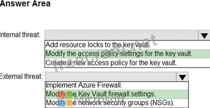 What should you recommend for each threat? To answer, select the appropriate options in the answer area.