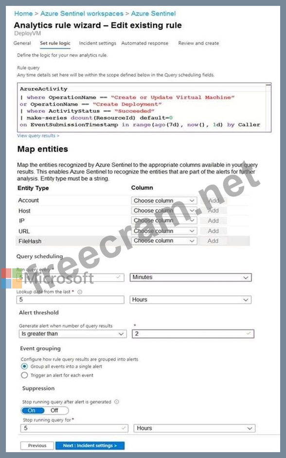 Question 43: You have a custom analytics rule to detect threats in Azure ...