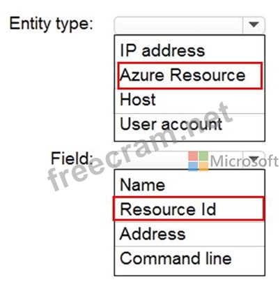 Which entity type and field should you use in a suppression rule? To answer, select the appropriate options in the answer area.