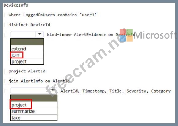 How should you complete the query? To answer, select the appropriate options in the answer area.