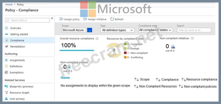 Azure Policy assignments are configured as shown in the Policies exhibit. (Click the Policies tab.)