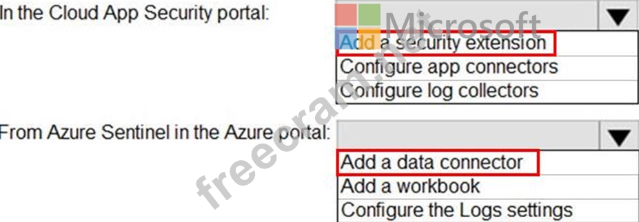 1- from Defender for Cloud Apps --> Security extensions --> Add SIEM agents tab --> then click "Add SIEM agent" and select Mircosoft Sentinel