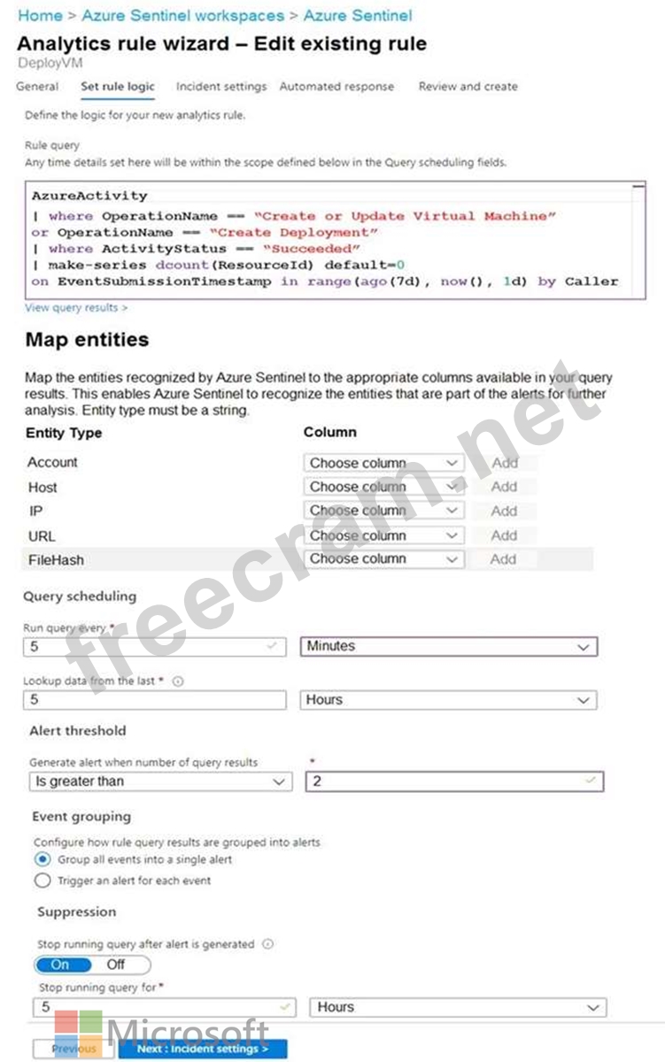 Question 103: You need to create the analytics rule to meet the Azure Sent...