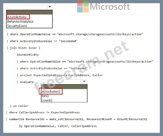 You need to create a hunting query to identify users that list storage keys of multiple Azure Storage accounts. The solution must exclude users that list storage keys for a single storage account.