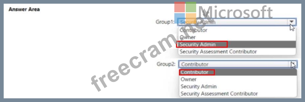 Group2 ---> Security Admin (because of least privilege and the question does not say specifically if it is at the subscription level)
