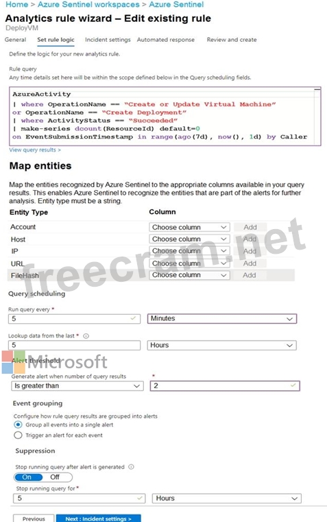 You create custom analytics rules to detect threats as shown in the following exhibit.