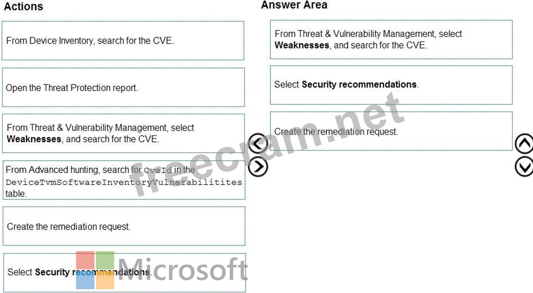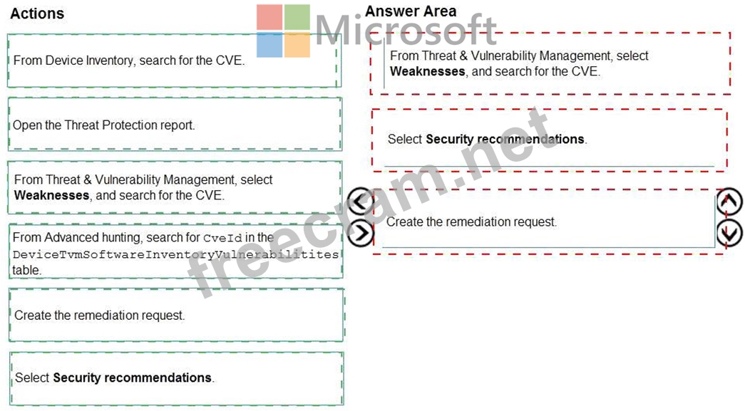 Which three actions should you perform in sequence? To answer, move the appropriate actions from the list of actions to the answer area and arrange them in the correct order.