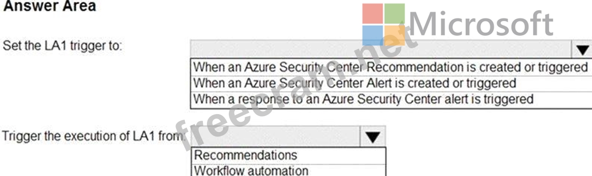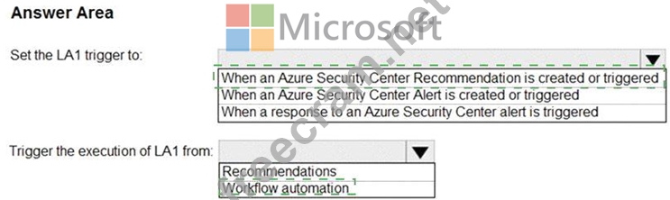 You plan to use LA1 to automatically remediate security risks detected in Azure Security Center.