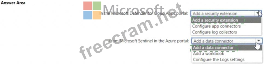 You need to configure the Microsoft Sentinel integration to meet the Microsoft Sentinel requirements. What should you do? To answer, select the appropriate options in the answer area. NOTE: Each correct selection is worth one point.
