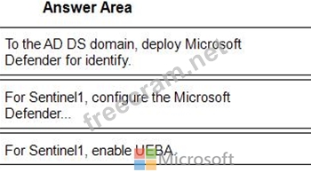 You need to enable User and Entity Behavior Analytics (UEBA) for Sentinel1 and collect security events from the AD DS domain.