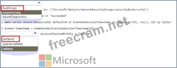 * Automatically associates the security principal with an Microsoft Sentinel entity How should you complete the query? To answer, select the appropriate options in the answer are a. NOTE: Each correct selection is worth one point.
