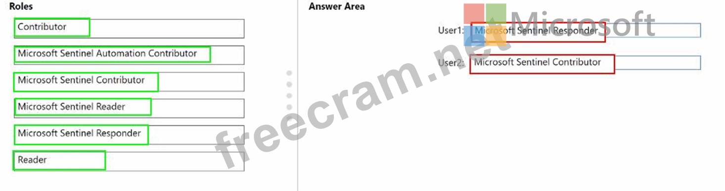 You have an Azure subscription that contains two users named User1 and User2 and a Microsoft Sentinel workspace named workspace1. You need to ensure that the users can perform the following tasks in workspace1: