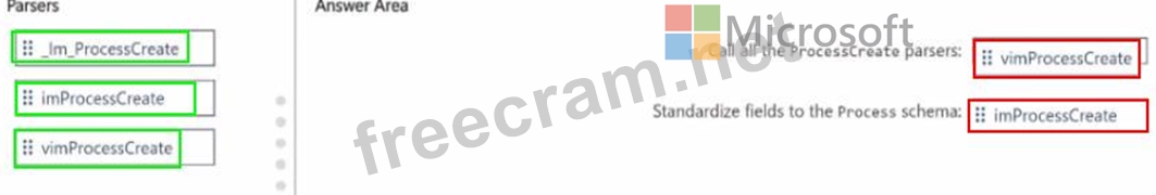 Which parser should you modify to meet each requirement? To answer, drag the appropriate parsers to the correct requirements. tach parser may be used once, more than once, or not at all You may need to drag the split bar between panes or scroll to view content.