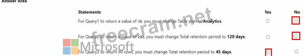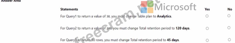 You have a Microsoft Sentinel workspace that has a default data retention period of 30 days. The workspace contains two custom tables as shown in the following table.