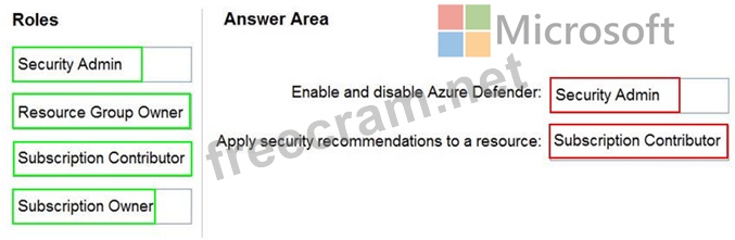 Which Azure Security Center role should you use for each requirement? To answer, drag the appropriate roles to the correct requirements. Each role may be used once, more than once, or not at all. You may need to drag the split bar between panes or scroll to view content.