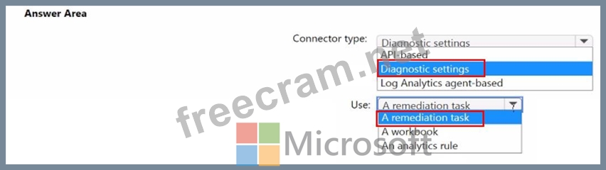 Which type of connectors should you provision, and what should you use to ensure that all the resources are monitored? To answer, select the appropriate options in the answer area.