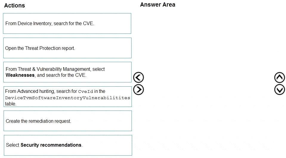Which three actions should you perform in sequence? To answer, move the appropriate actions from the list of actions to the answer area and arrange them in the correct order.