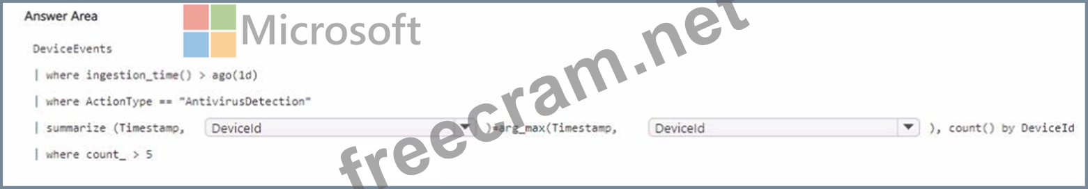 You need to create a custom detection rule that will identify devices that had more than five antivirus detections within the last 24 hours.