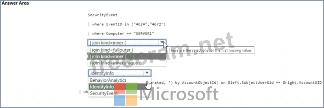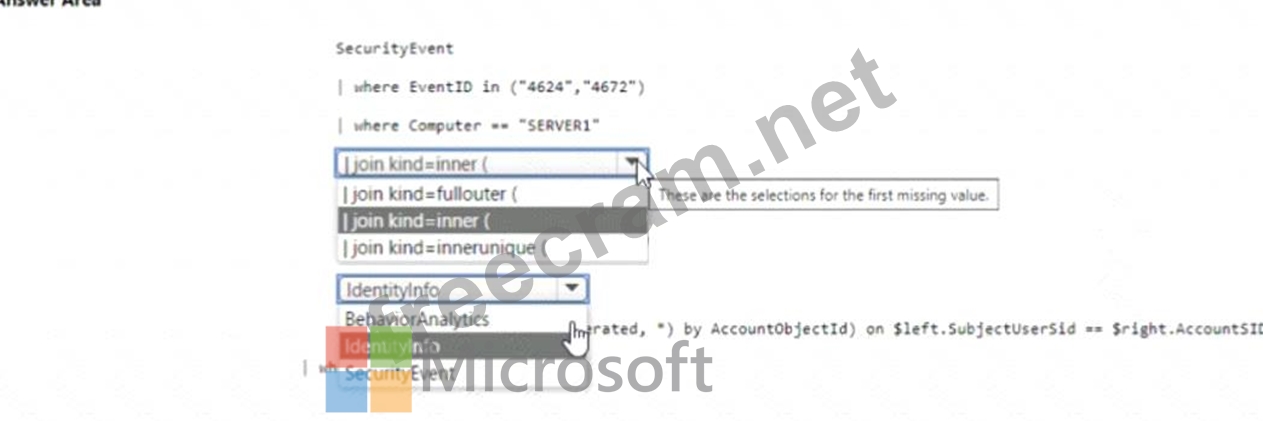 How should you complete the query? To answer, select the appropriate options in the answer area. NOTE: