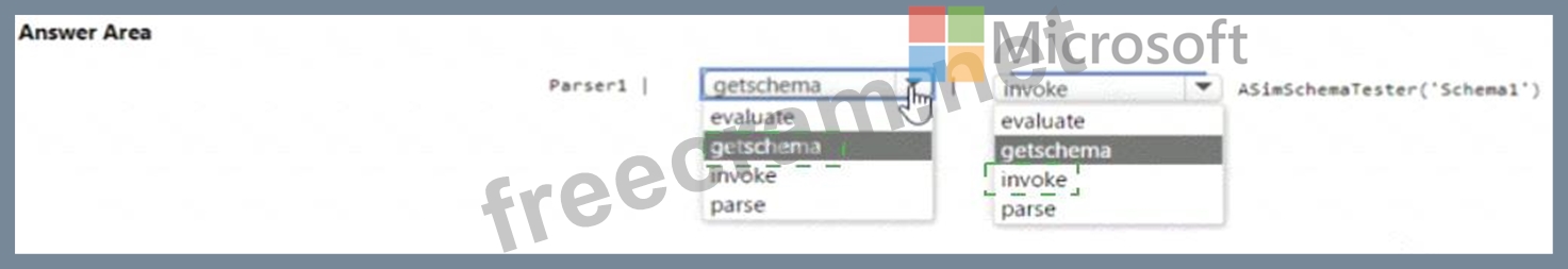 You develop a custom Advanced Security information Model (ASIM) parser named Parser1 that produces a schema named Schema1.