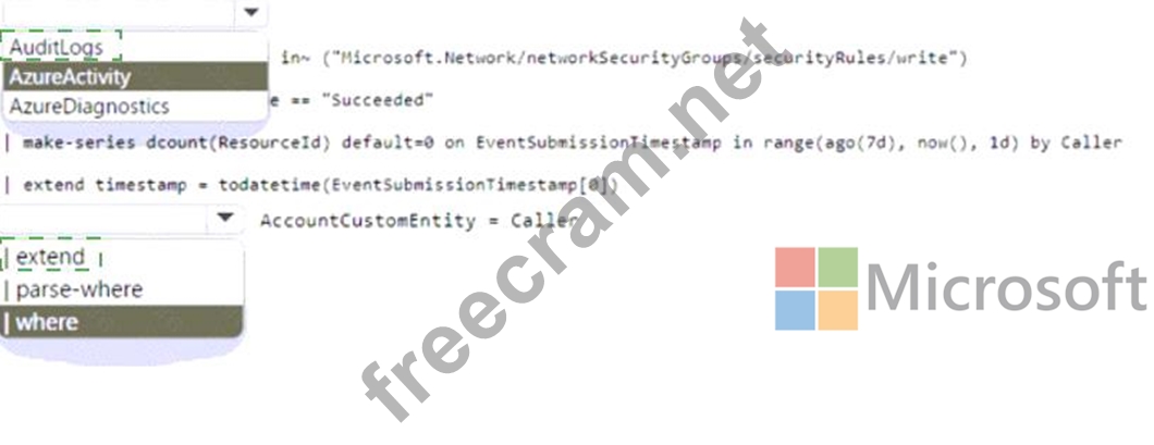 * Automatically associates the security principal with an Microsoft Sentinel entity How should you complete the query? To answer, select the appropriate options in the answer area. NOTE: