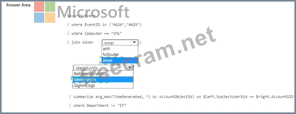 You need to update Rule 1 to detect when a user from outside the IT department of your company signs in to VM1. The solution must meet the following requirements: