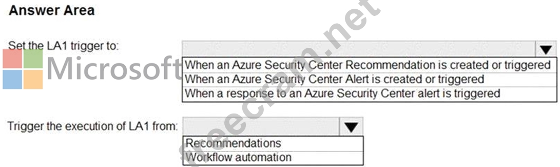 You plan to use LA1 to automatically remediate security risks detected in Azure Security Center.