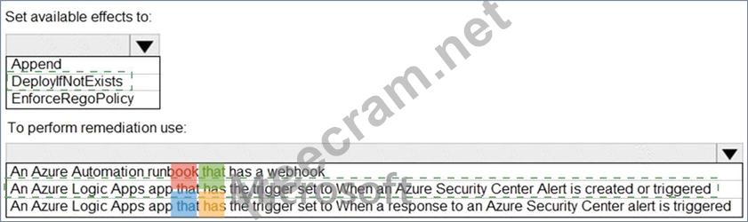 You need to create an Azure policy that will perform threat remediation automatically.