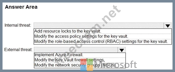 What should you recommend for each threat? To answer, select the appropriate options in the answer area.