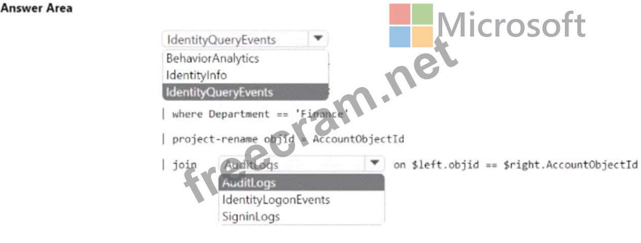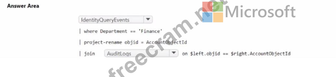 How should you complete the KQL query? To answer, select the appropriate options in the answer area.