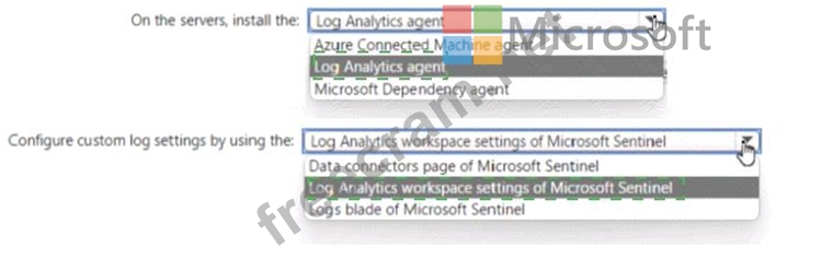You need to upload custom logs from the on-premises servers to Microsoft Sentinel.