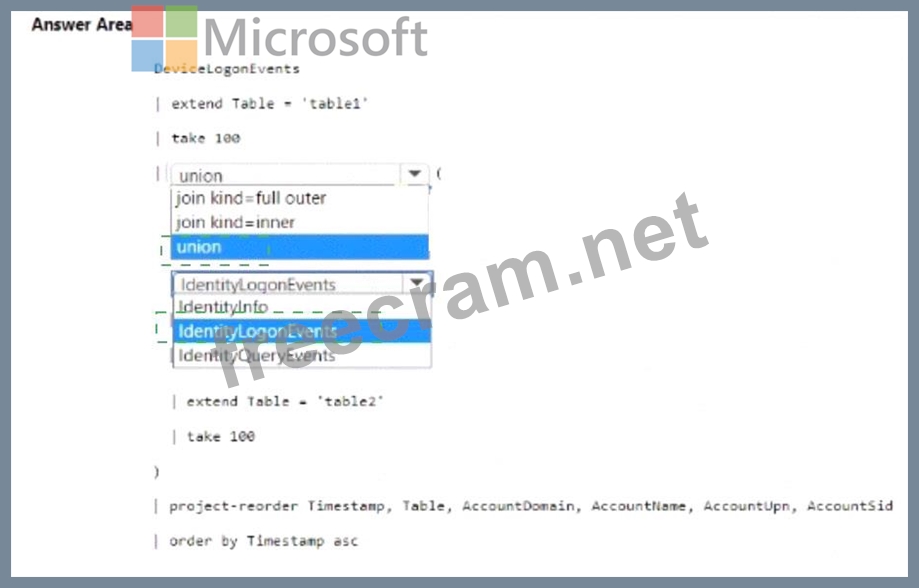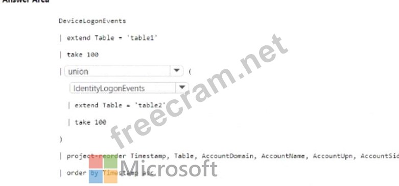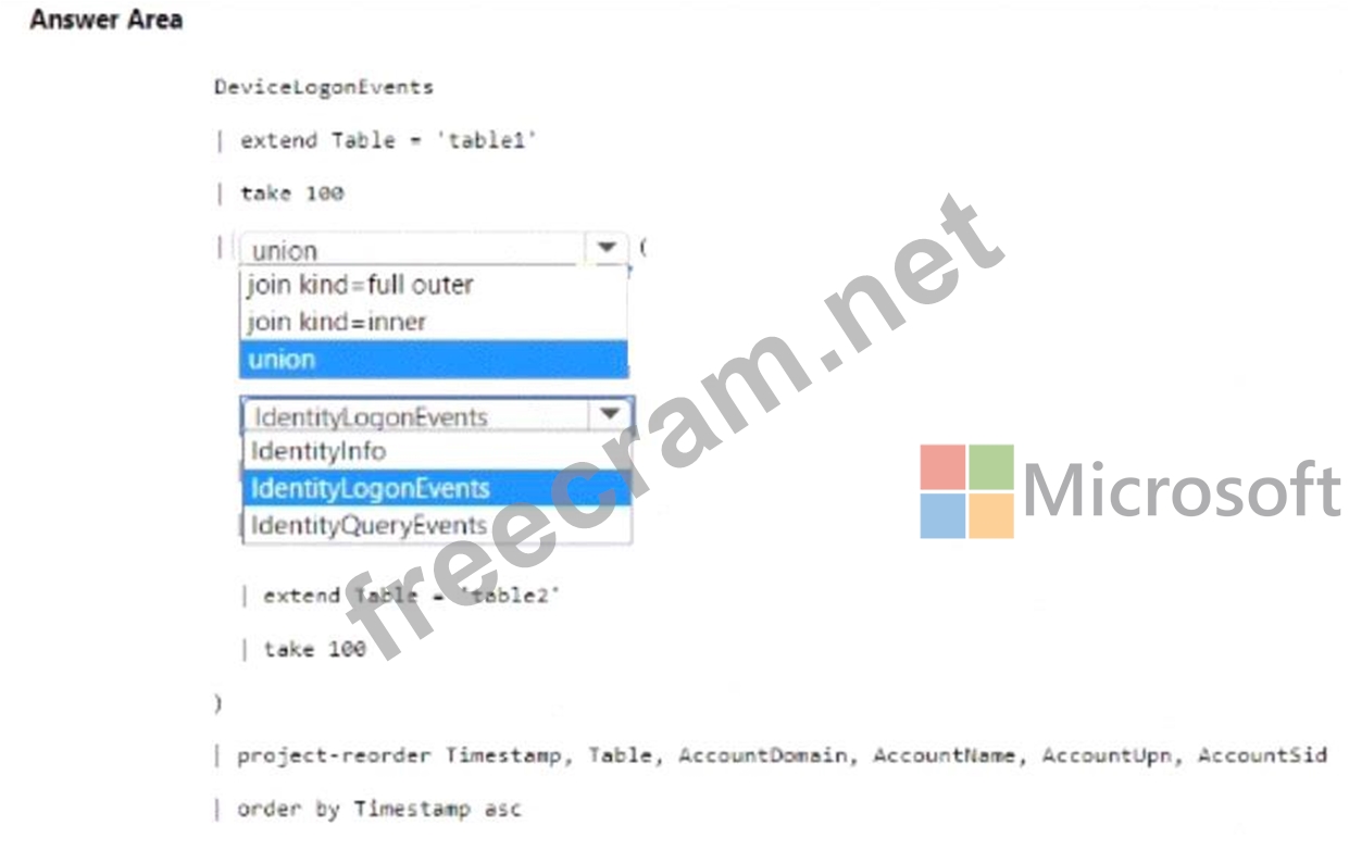 How should you complete The KQL query? To answer, select the appropriate options in the answer area.