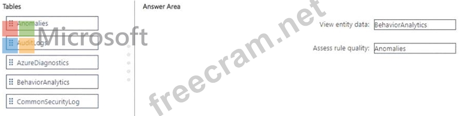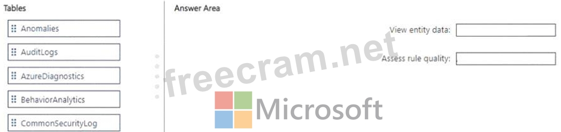 Which table should you use in KQL for each task? To answer, drag the appropriate tables to the correct tasks.