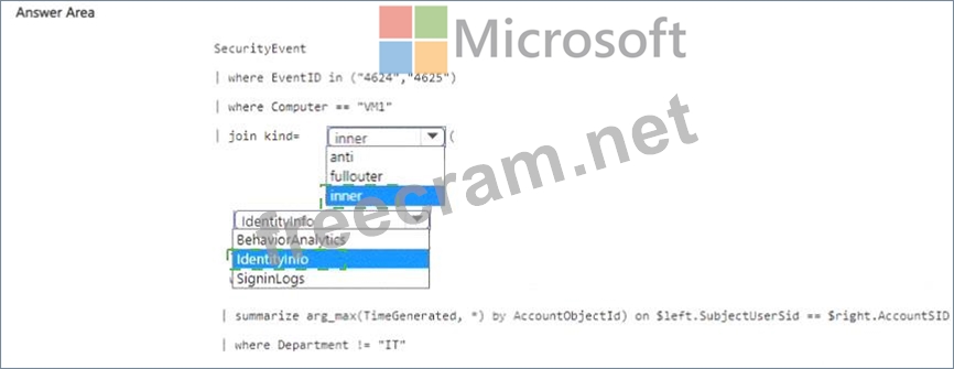 You need to update Rule 1 to detect when a user from outside the IT department of your company signs in to VM1. The solution must meet the following requirements: