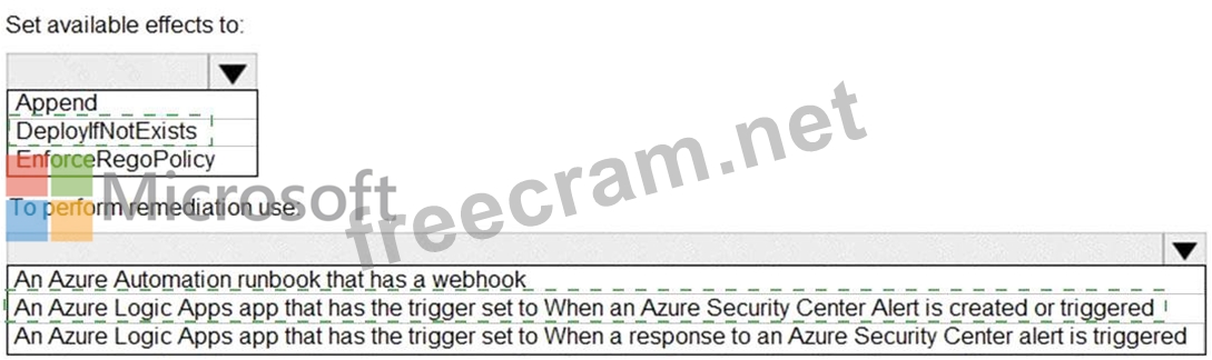 You need to create an Azure policy that will perform threat remediation automatically.