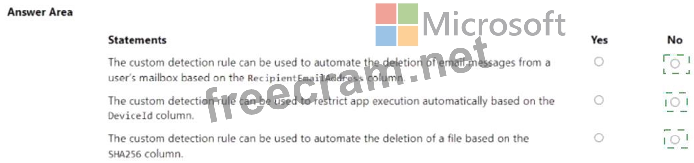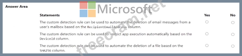 Question 25: You have a custom detection rule that includes the following...