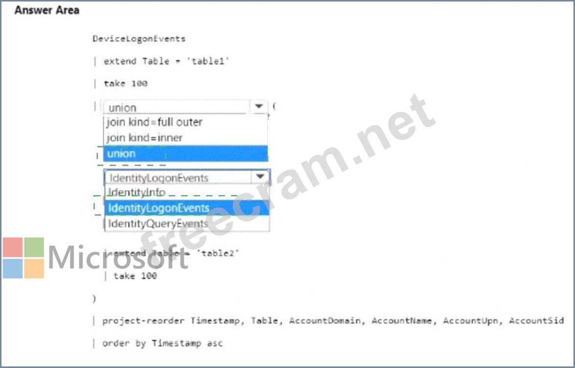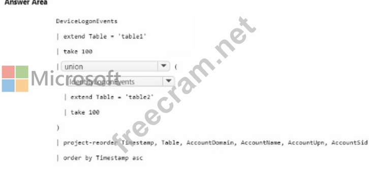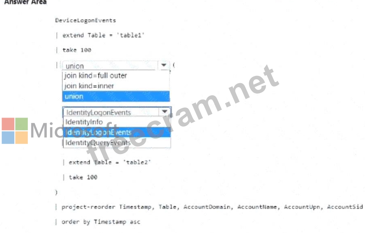 How should you complete The KQL query? To answer, select the appropriate options in the answer area.