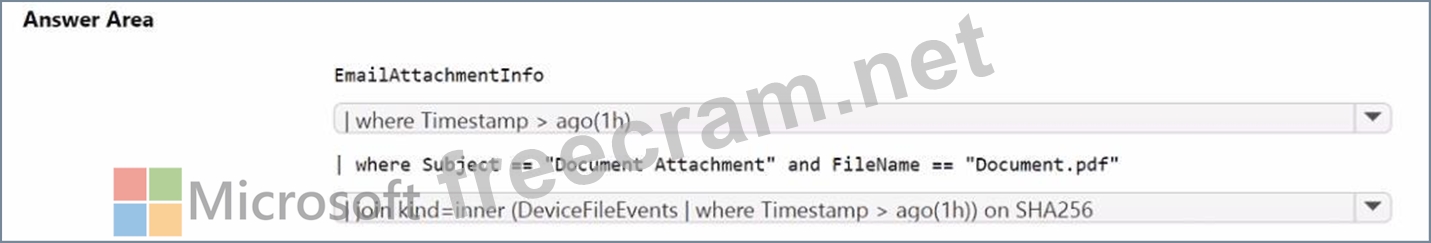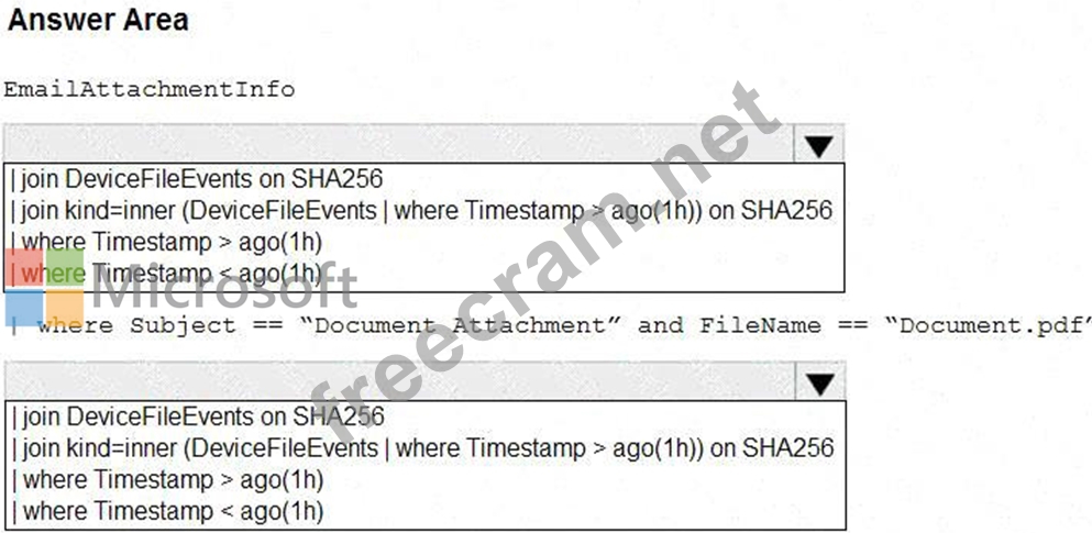 How should you complete the query? To answer, select the appropriate options in the answer area. NOTE: