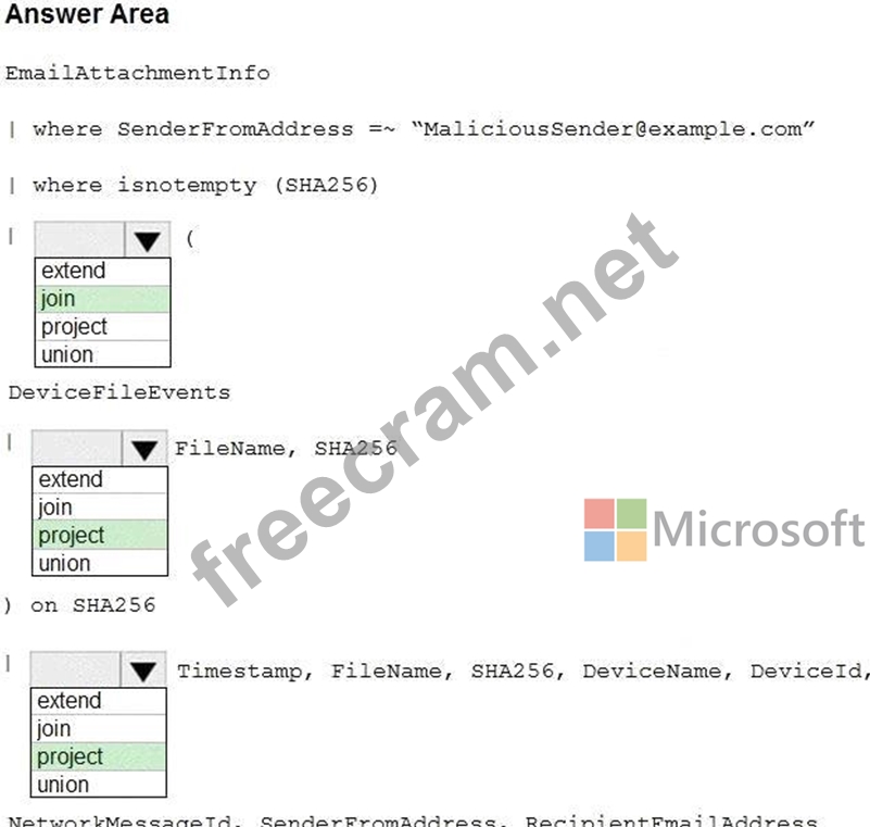 How should you complete the query? To answer, select the appropriate options in the answer area.