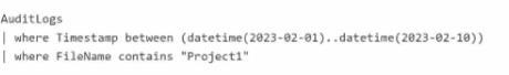 You need to identify any Project1 files that were stored on the team site of Team1 between February 1, 2023, and February 10, 2023.