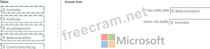 Which table should you use in KQL for each task? To answer, drag the appropriate tables to the correct tasks.