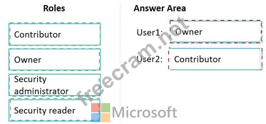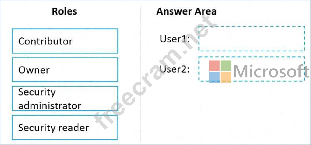 Which role should you assign to each user? To answer, drag the appropriate roles to the correct users. Each role may be used once, more than once, or not at all. You may need to drag the split bar between panes or scroll to view content.